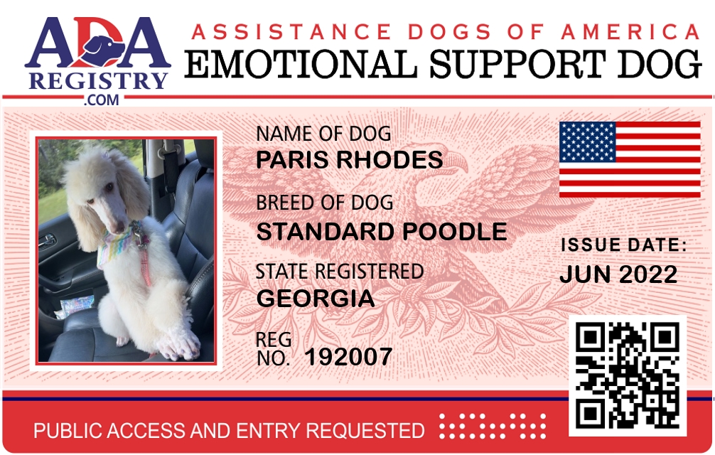 Emotional Support Dog Registration for Paris Rhodes