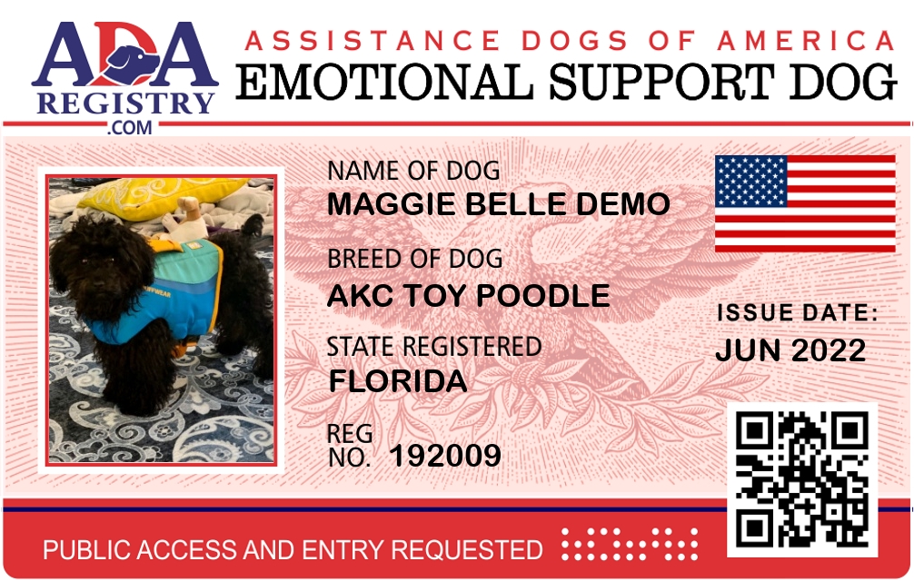 Emotional Support Dog Registration for Maggie Belle Demo