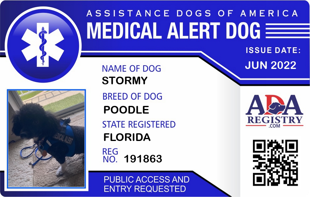 Medical Alert Dog Registration for Stormy