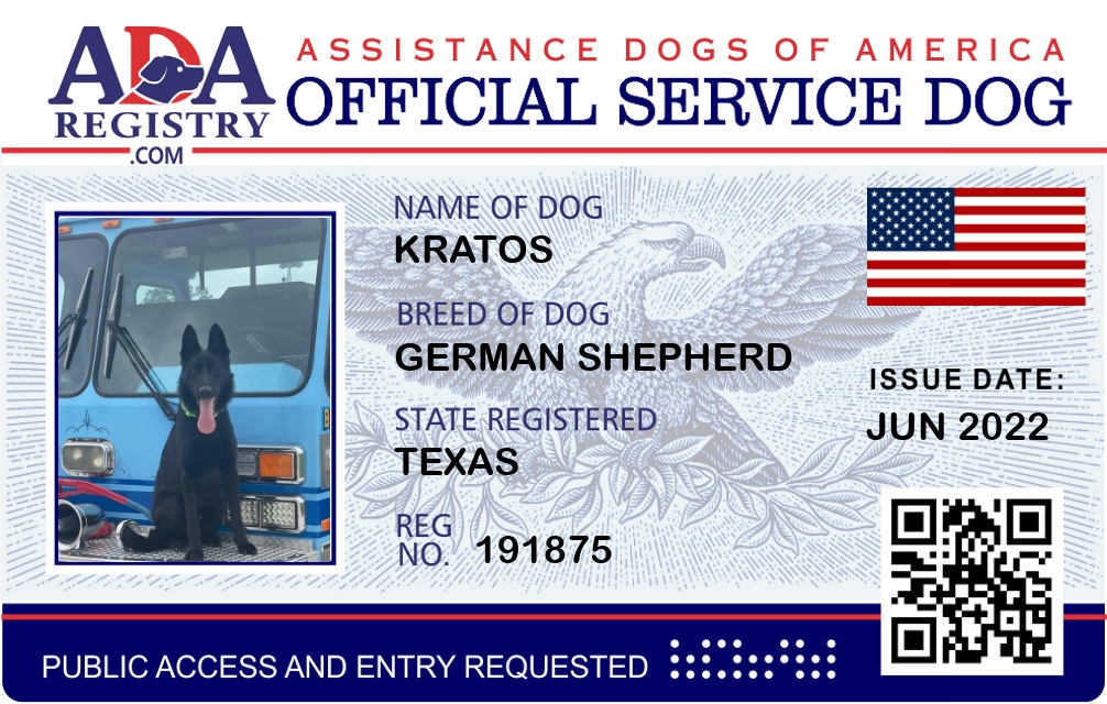 Service Dog Registration for Kratos