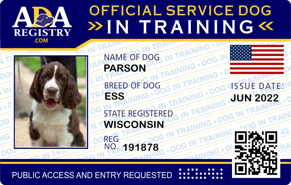 Service Dog In Training Registration for Parson