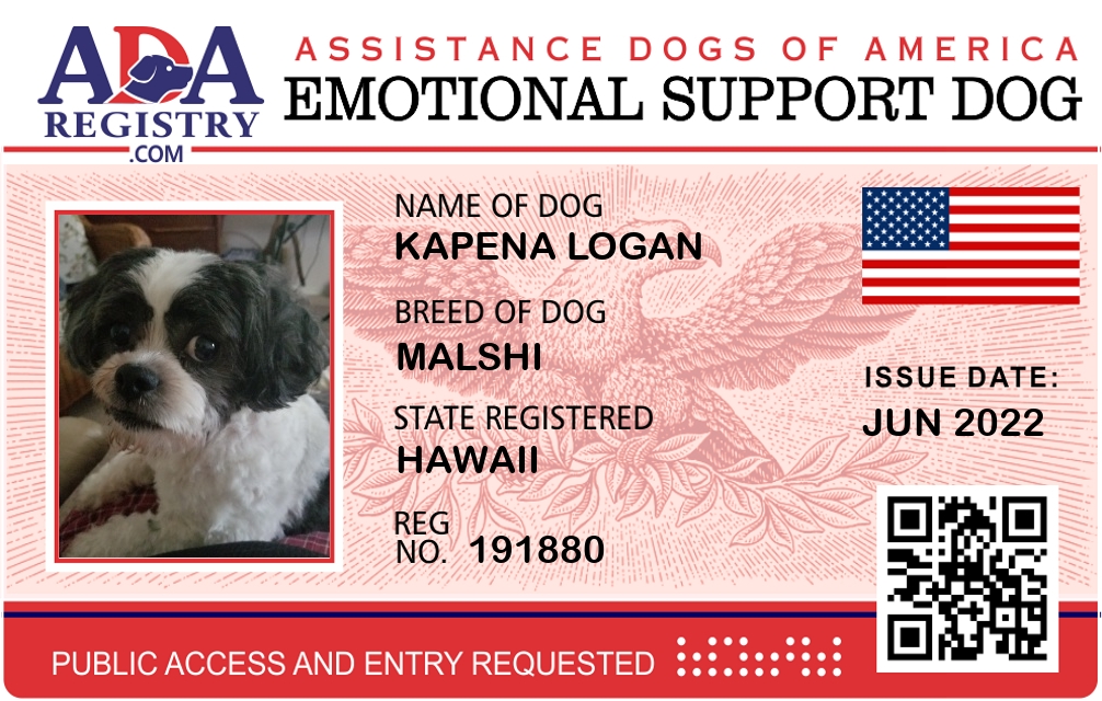 Emotional Support Dog Registration for Kapena Logan