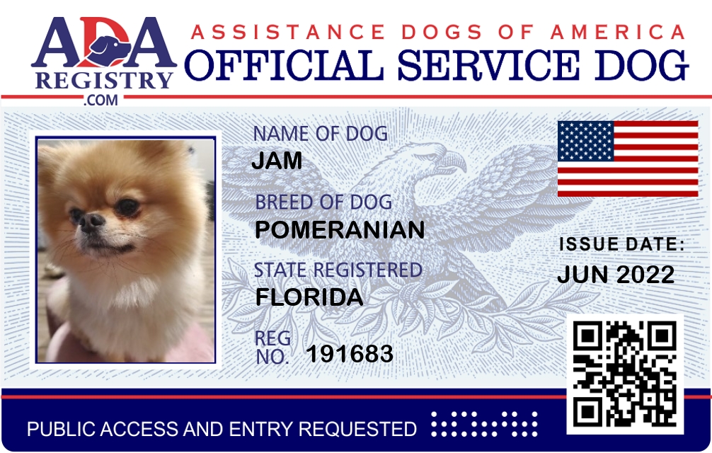 Service Dog Registration for Jam