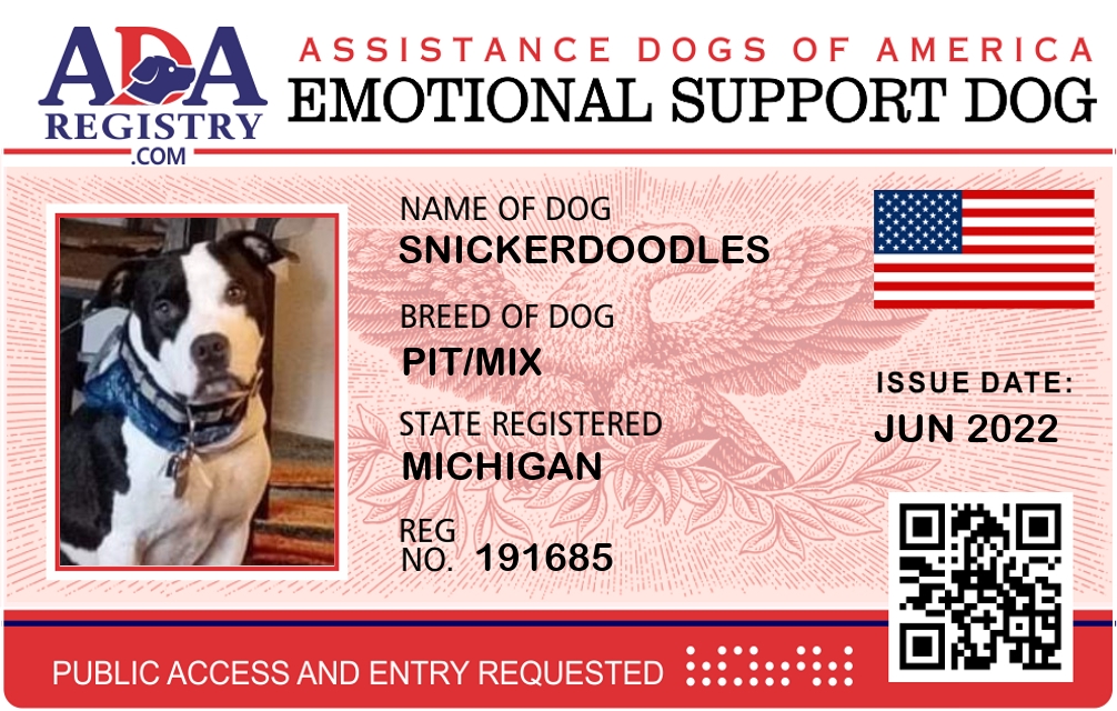 Emotional Support Dog Registration for Snickerdoodles