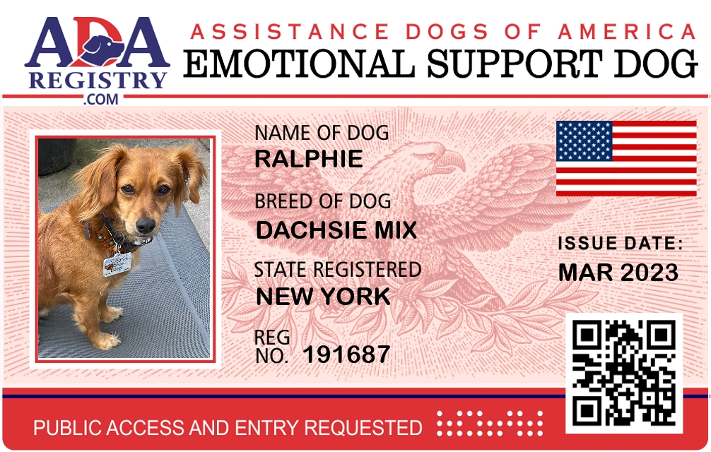 Emotional Support Dog Registration for Ralphie