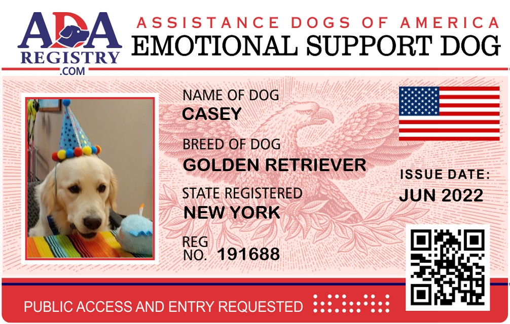 Emotional Support Dog Registration for Casey