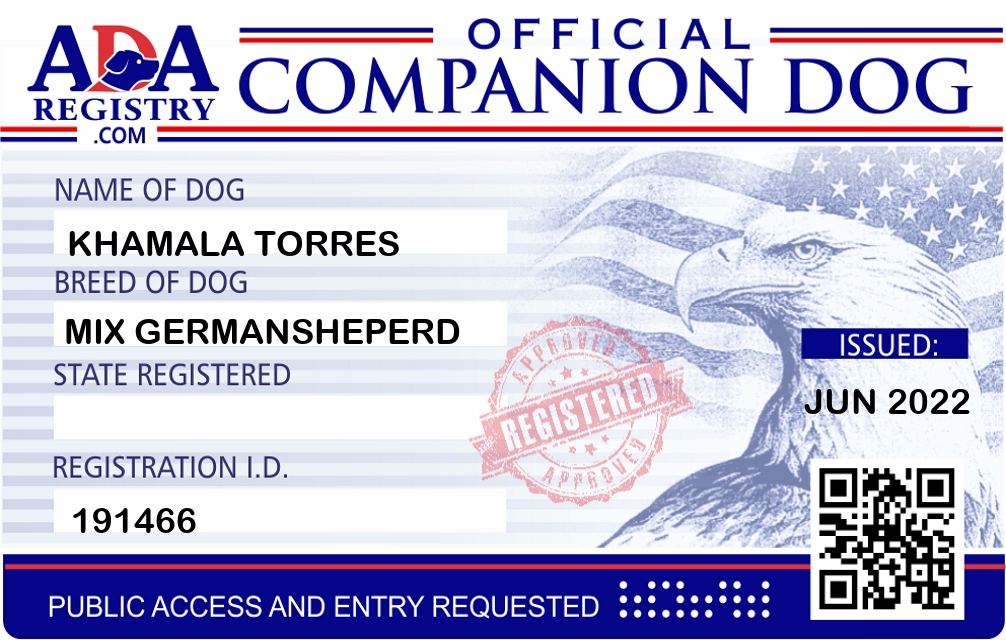 Companion Dog Registration for Khamala Torres