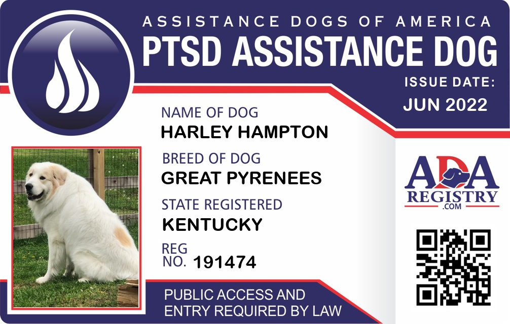 PTSD Assistance Dog Registration for Harley Hampton