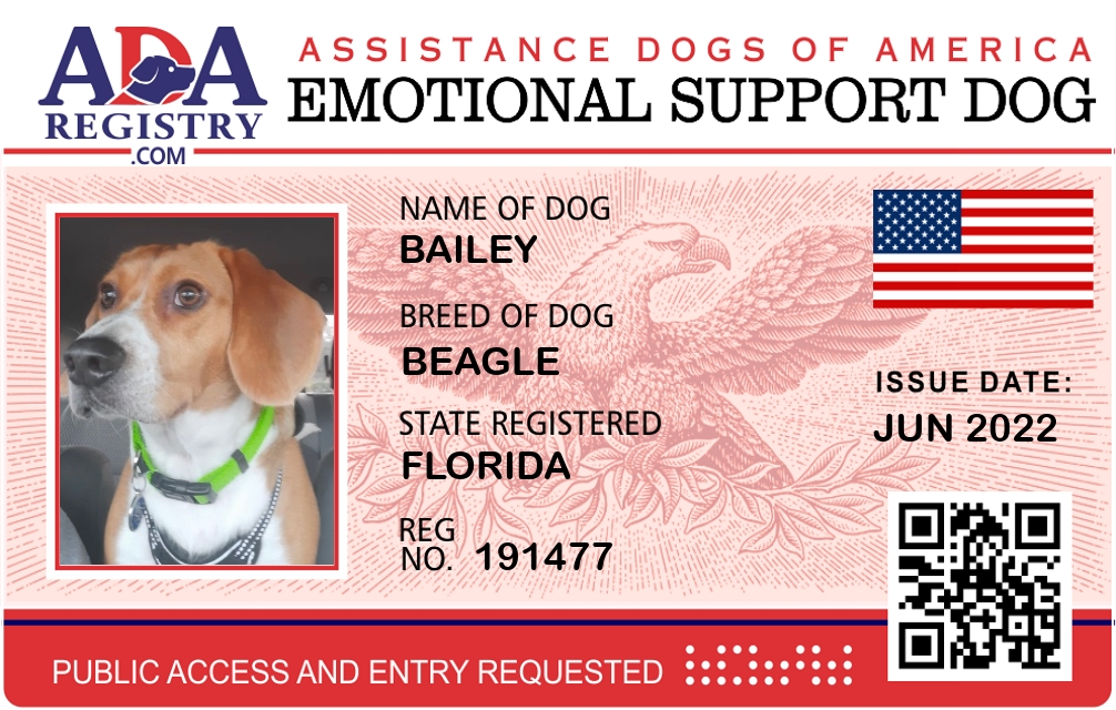Emotional Support Dog Registration for Bailey