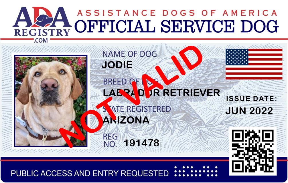 Service Dog Registration for Jodie