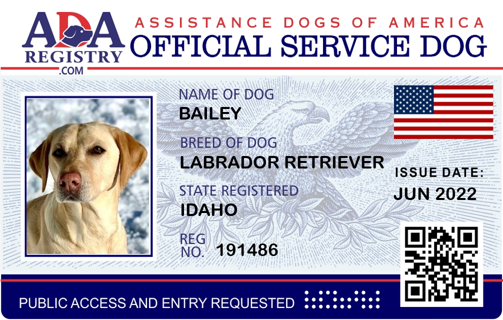 Service Dog Registration for Bailey