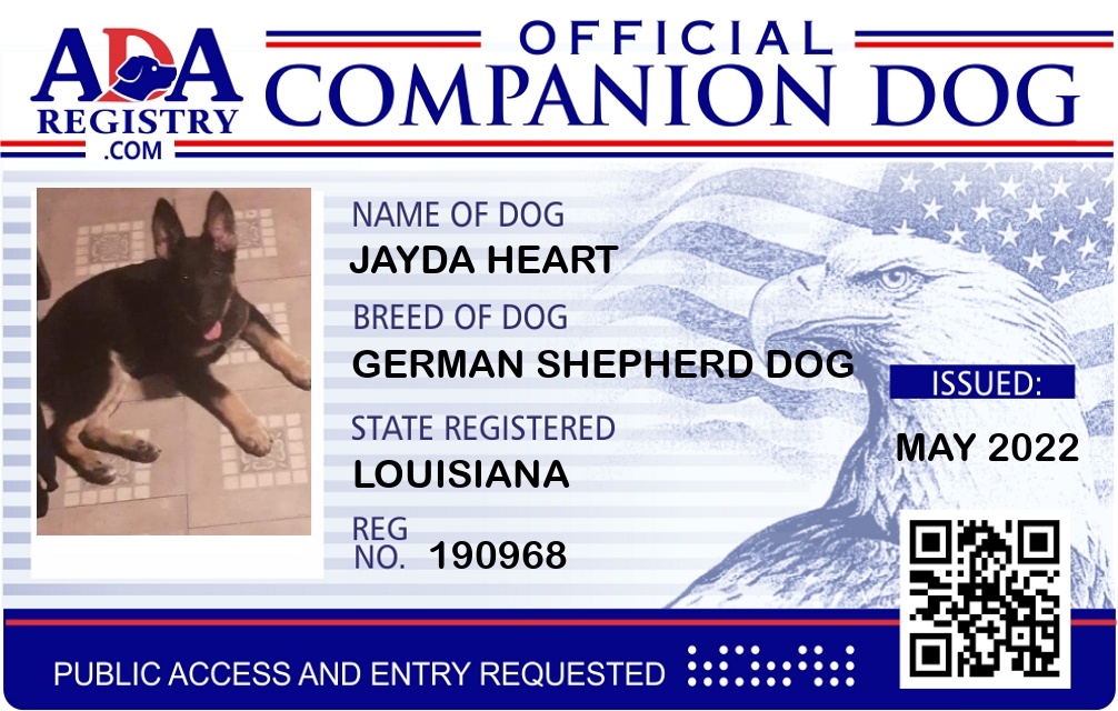 Companion Dog Registration for Jayda Heart