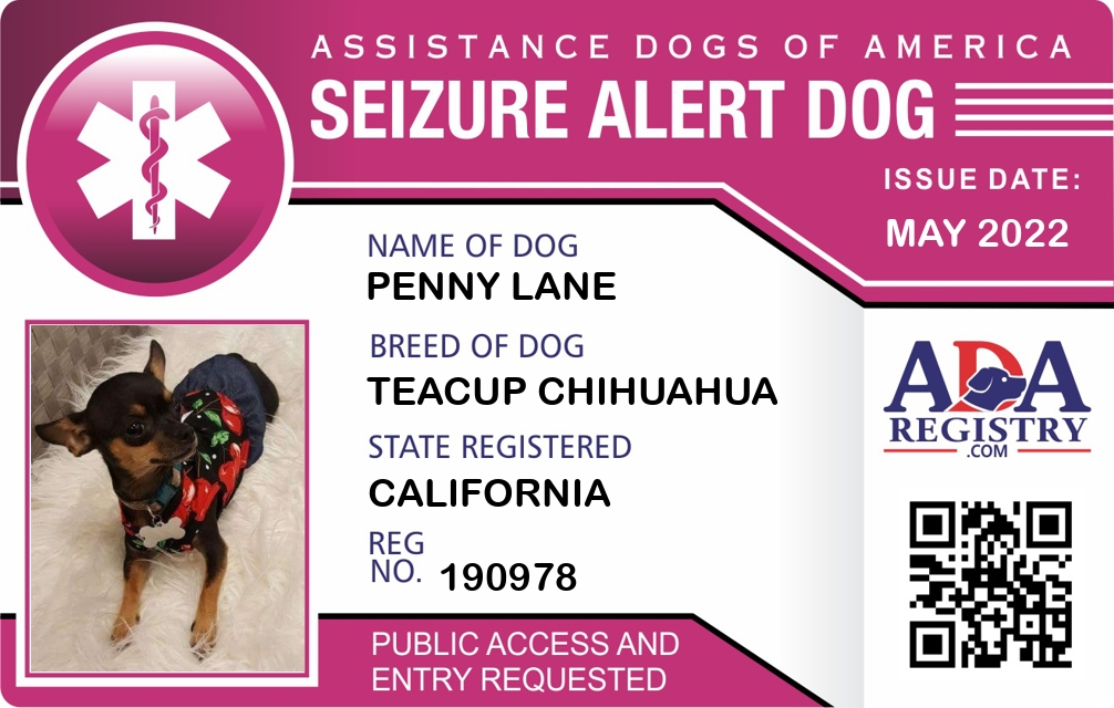 Seizure Assistance Dog Registration for Penny Lane