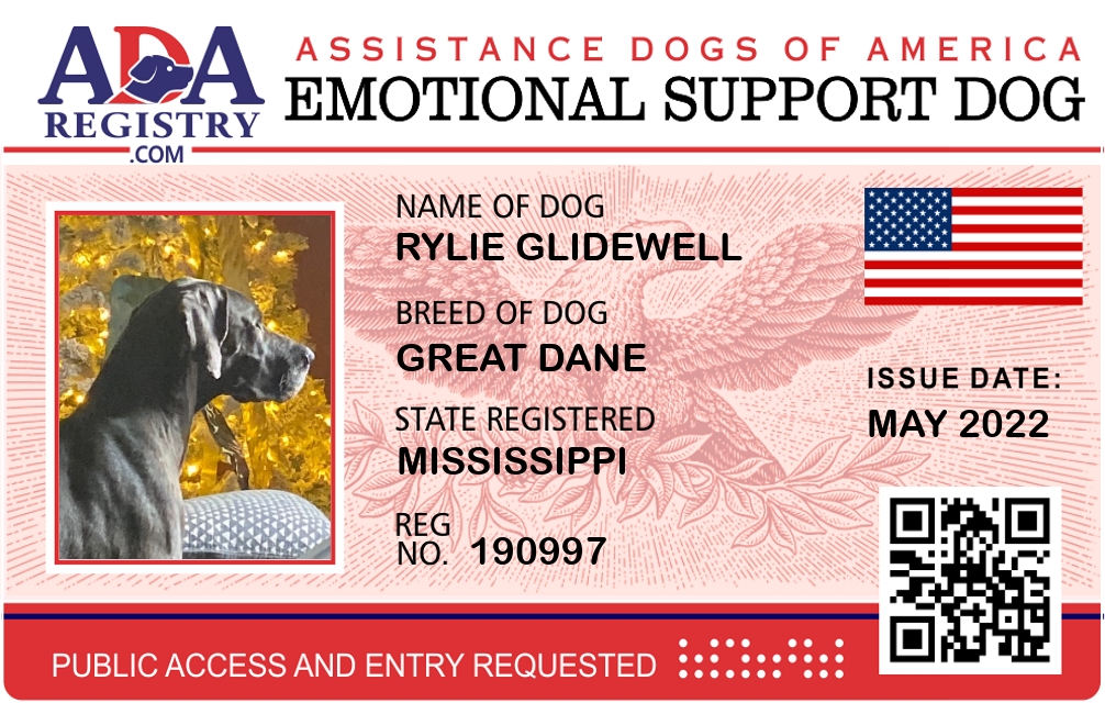 Emotional Support Dog Registration for Rylie Glidewell