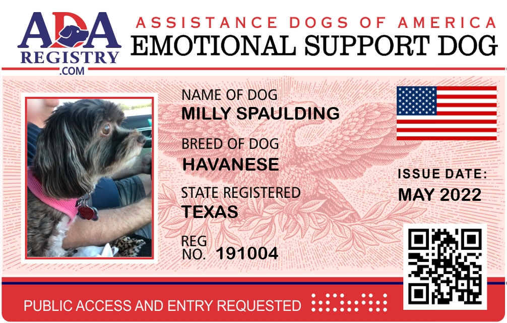 Emotional Support Dog Registration for Milly Spaulding
