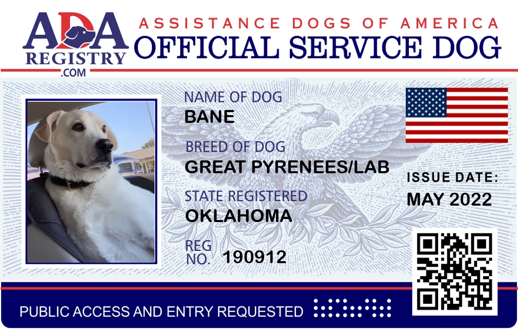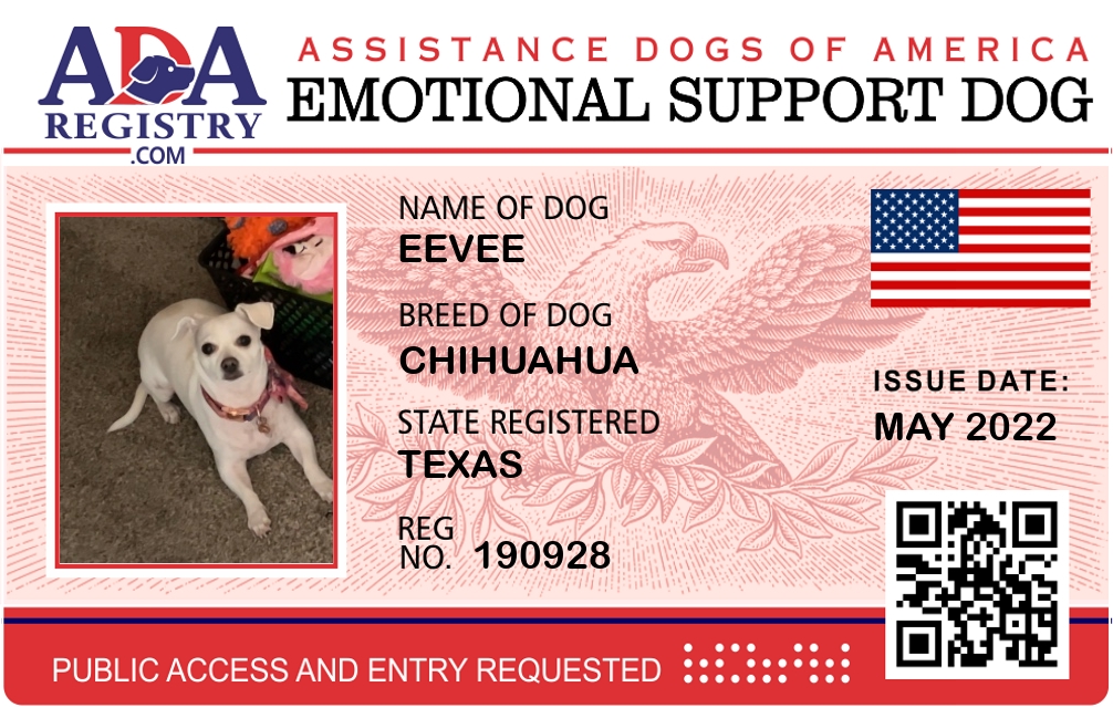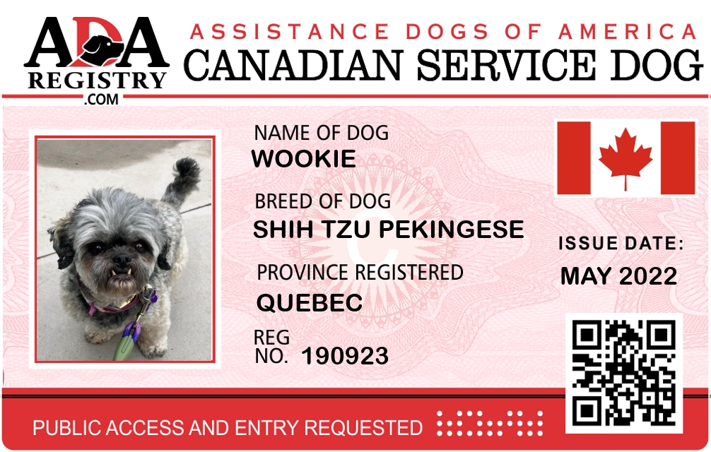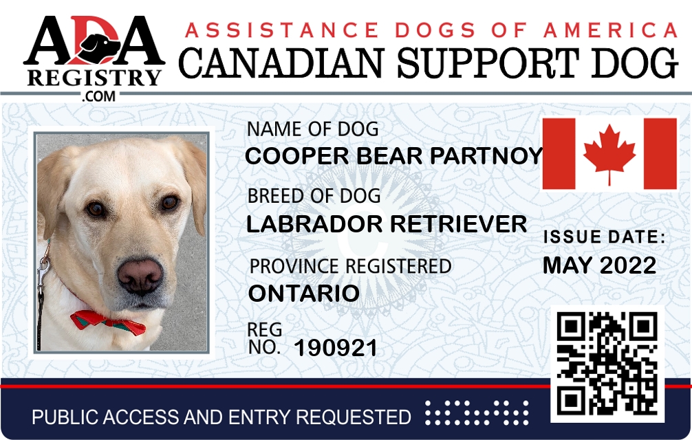 Emotional Support Dog Registration for Cooper Bear Partnoy