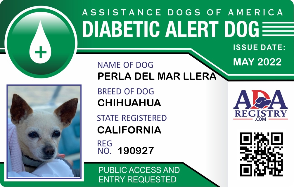 Diabetic Alert Dog Registration for Perla del Mar Llera