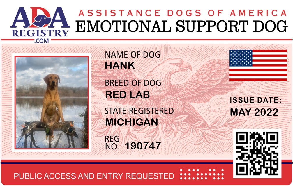 Emotional Support Dog Registration for Hank