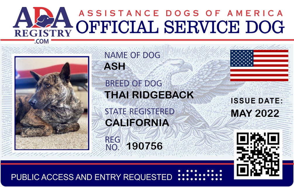 Service Dog Registration for Ash