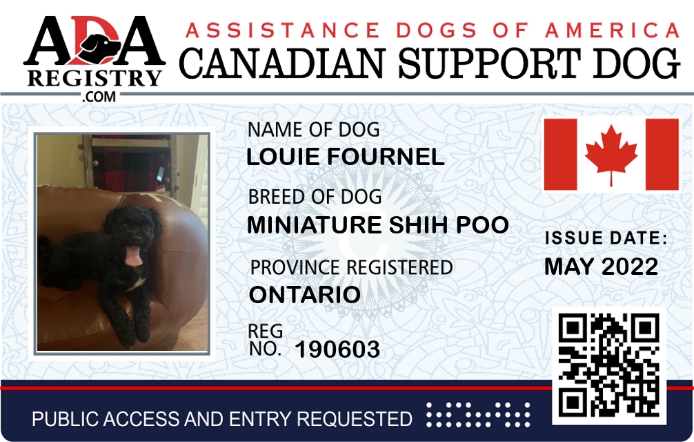 Emotional Support Dog Registration for Louie Fournel