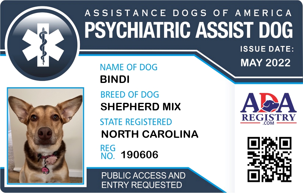 Psychiatric Service Dog Registration for Bindi