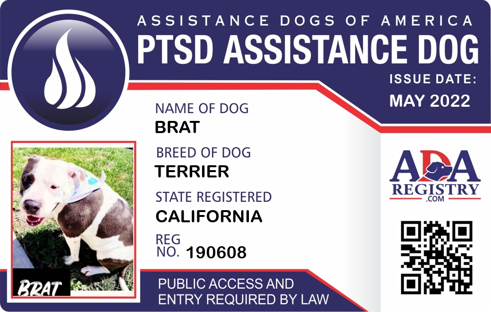 PTSD Assistance Dog Registration for Brat