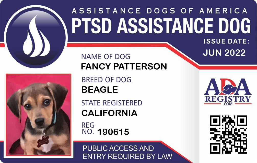 PTSD Assistance Dog Registration for Fancy Patterson