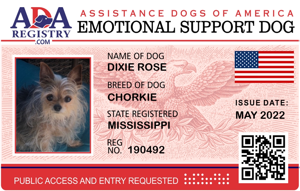 Emotional Support Dog Registration for Dixie Rose