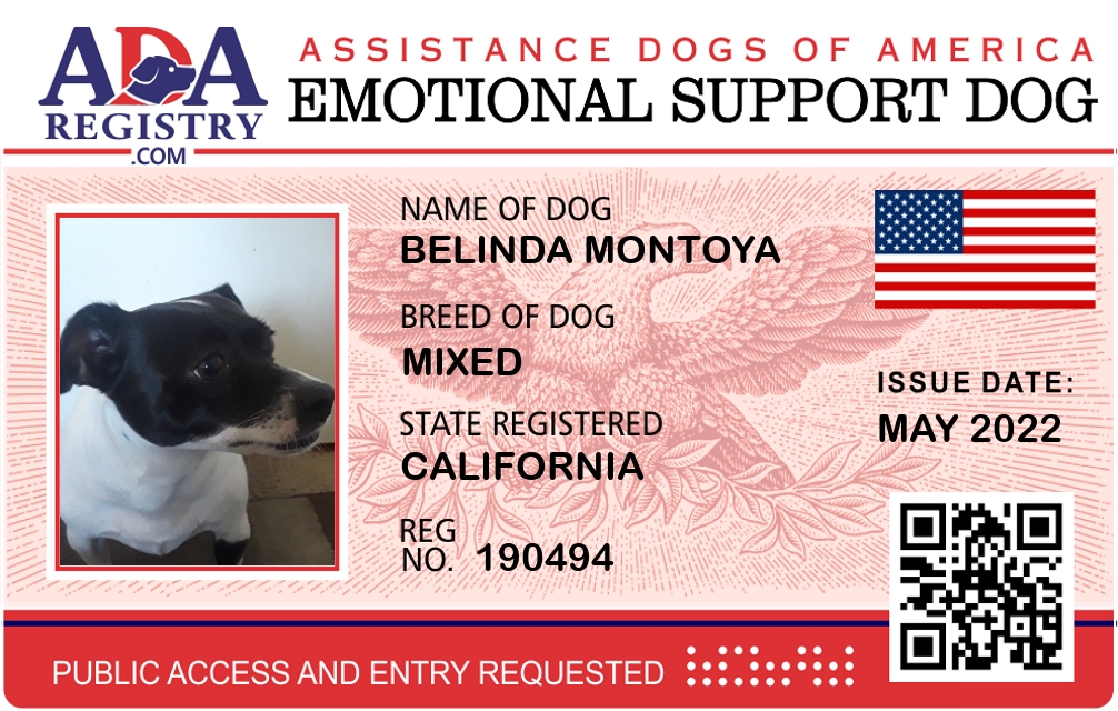 Emotional Support Dog Registration for Belinda Montoya