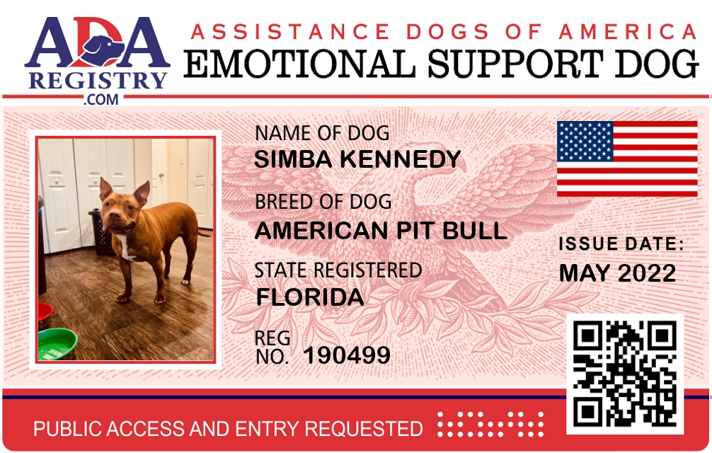 Emotional Support Dog Registration for Simba Kennedy