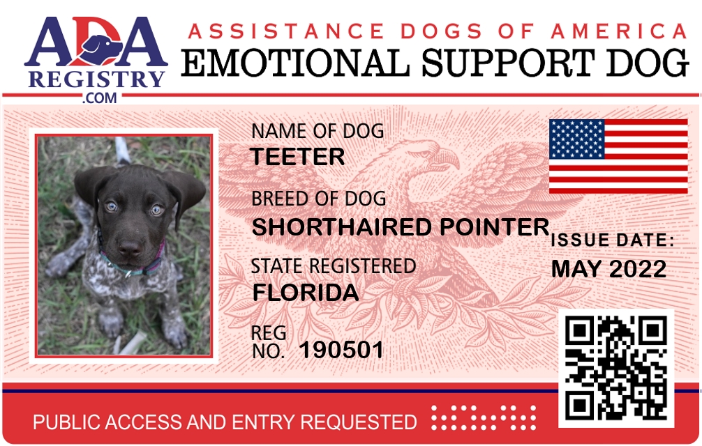 Emotional Support Dog Registration for Teeter