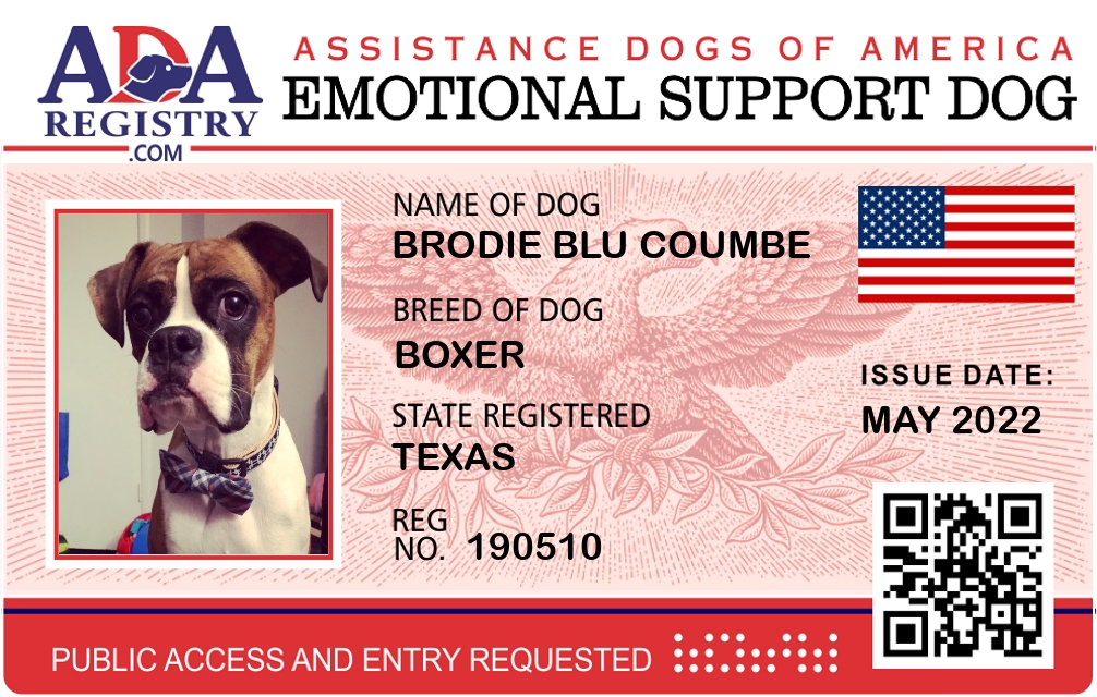 Emotional Support Dog Registration for Brodie Blu Coumbe