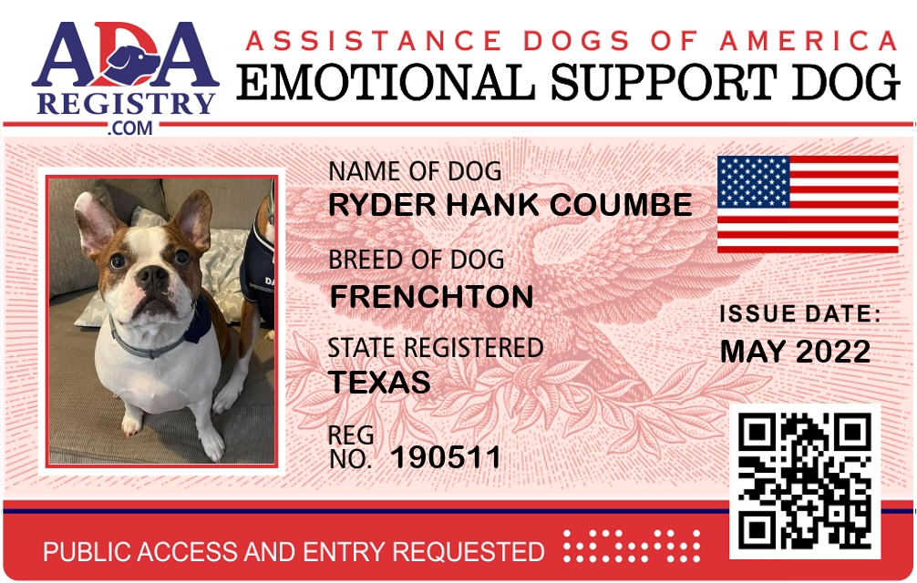 Emotional Support Dog Registration for Ryder Hank Coumbe