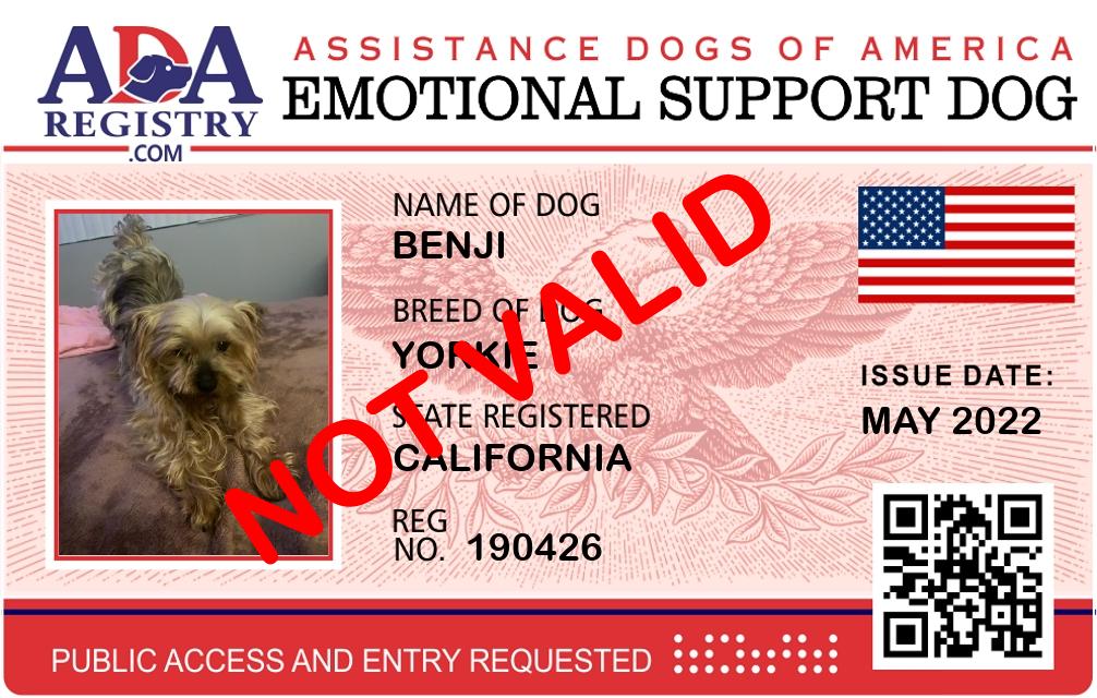 Emotional Support Dog Registration for Benji