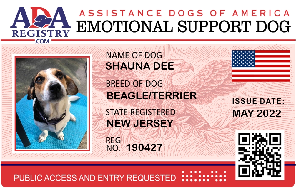 Emotional Support Dog Registration for Shauna Dee