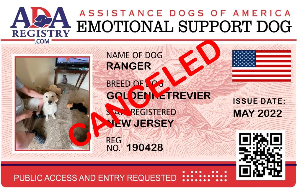 Emotional Support Dog Registration for Ranger