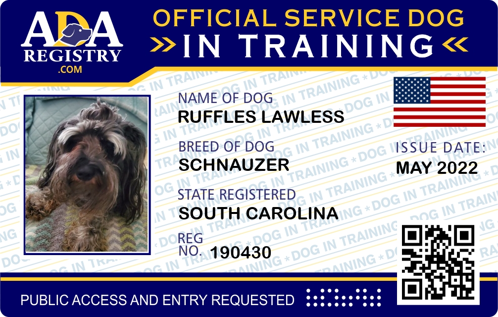 Service Dog In Training Registration for Ruffles Lawless