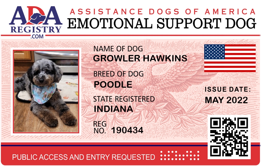 Emotional Support Dog Registration for Growler Hawkins