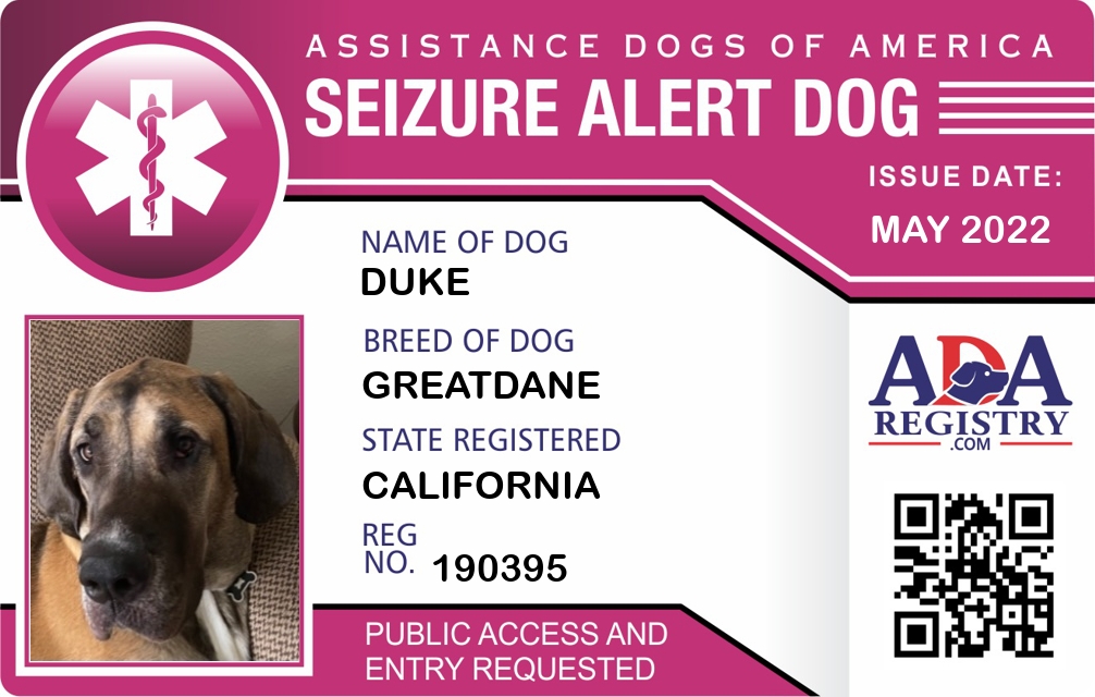 Seizure Assistance Dog Registration for Duke