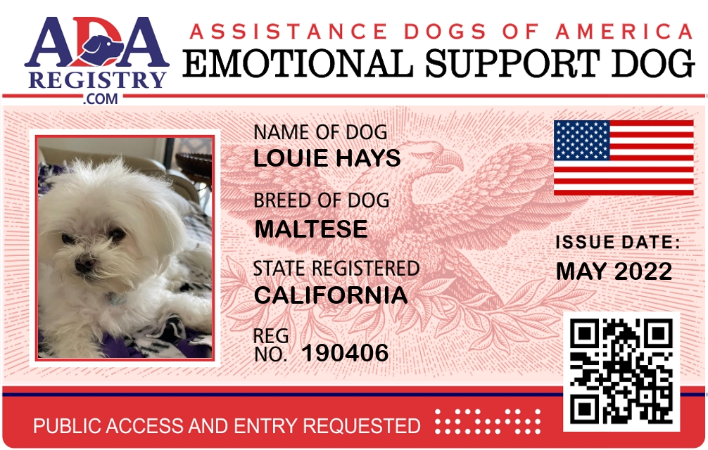 Emotional Support Dog Registration for Louie Hays