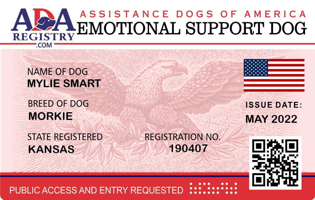Emotional Support Dog Registration for Mylie Smart