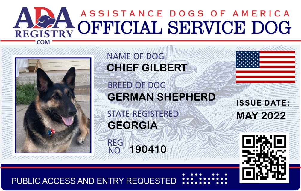 Service Dog Registration for Chief Gilbert