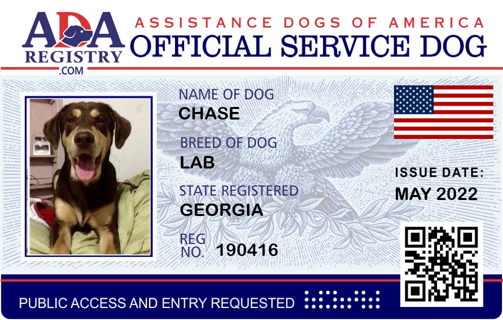 Service Dog Registration for Chase