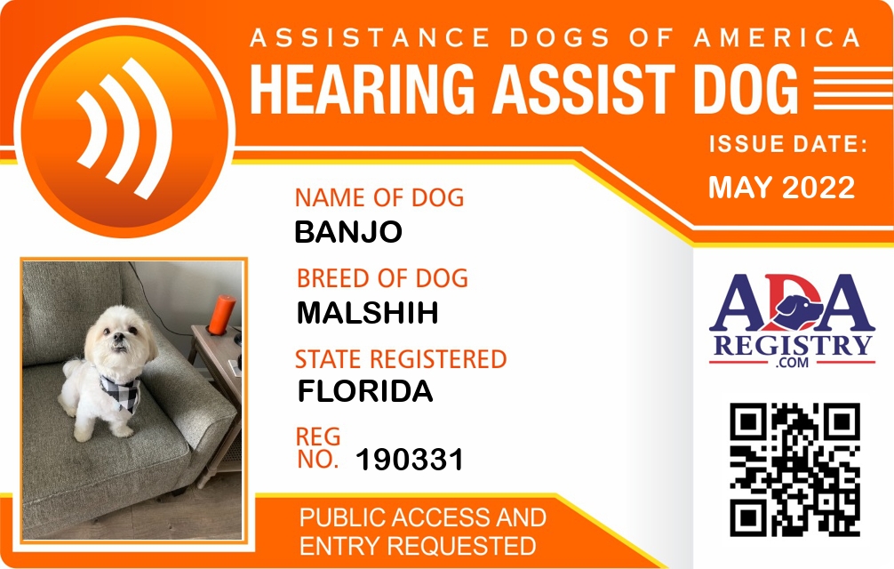 Hearing Assistance Dog Registration for Banjo