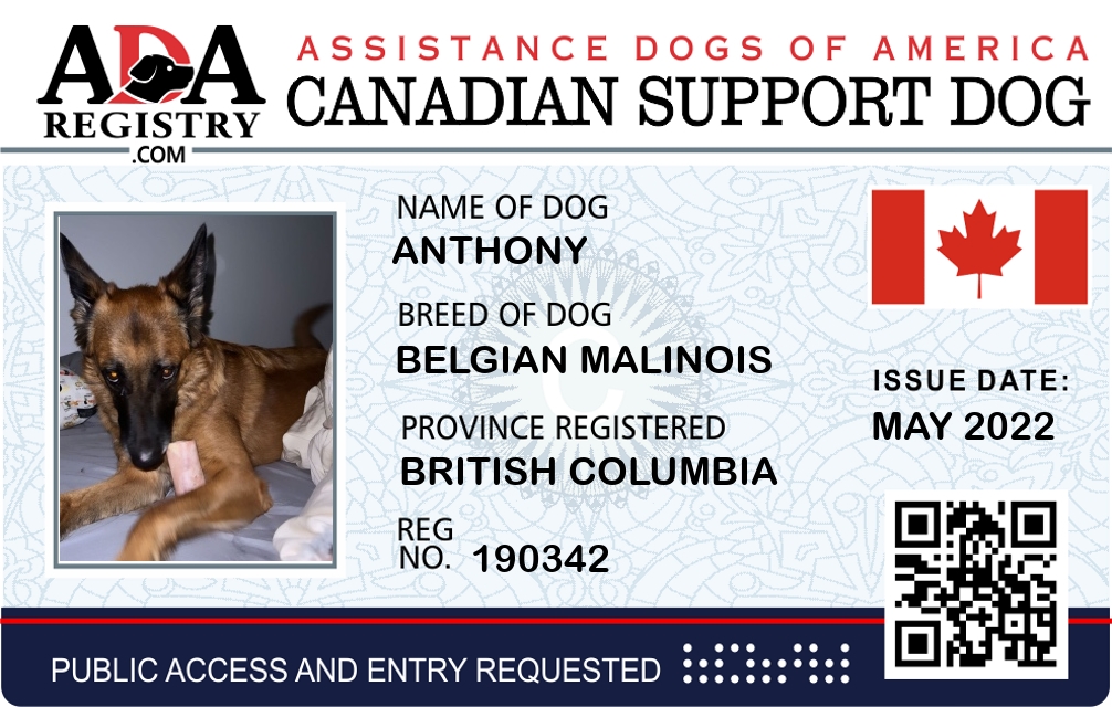 Emotional Support Dog Registration for ANTHONY