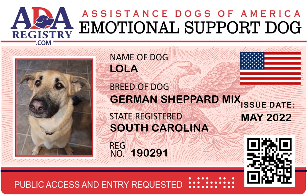 Emotional Support Dog Registration for Lola