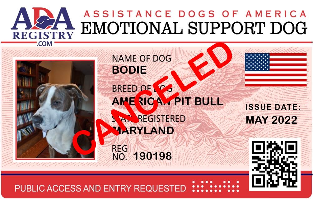 Emotional Support Dog Registration for BAUER