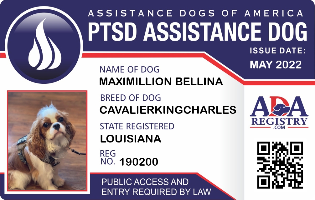 PTSD Assistance Dog Registration for Maximillion Bellina