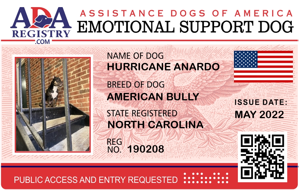 Emotional Support Dog Registration for Hurricane Anardo