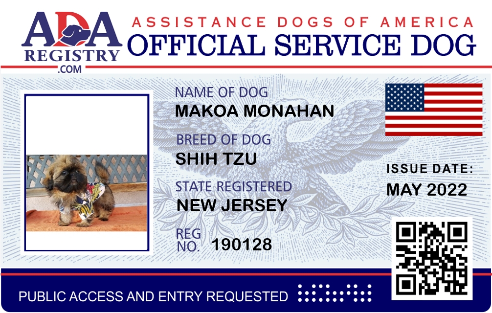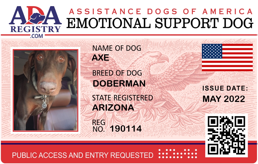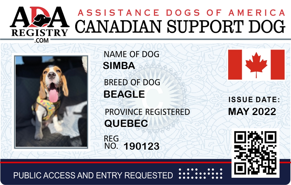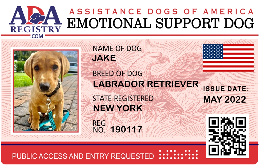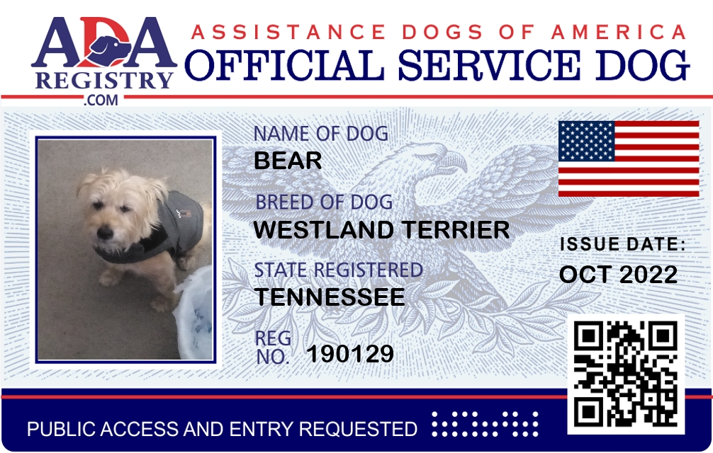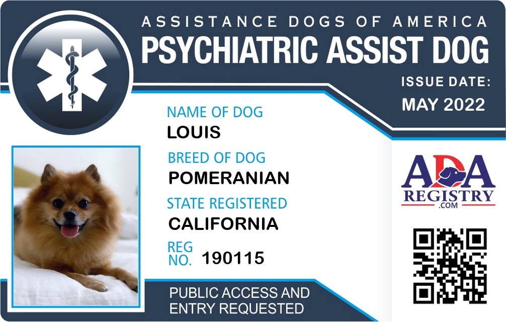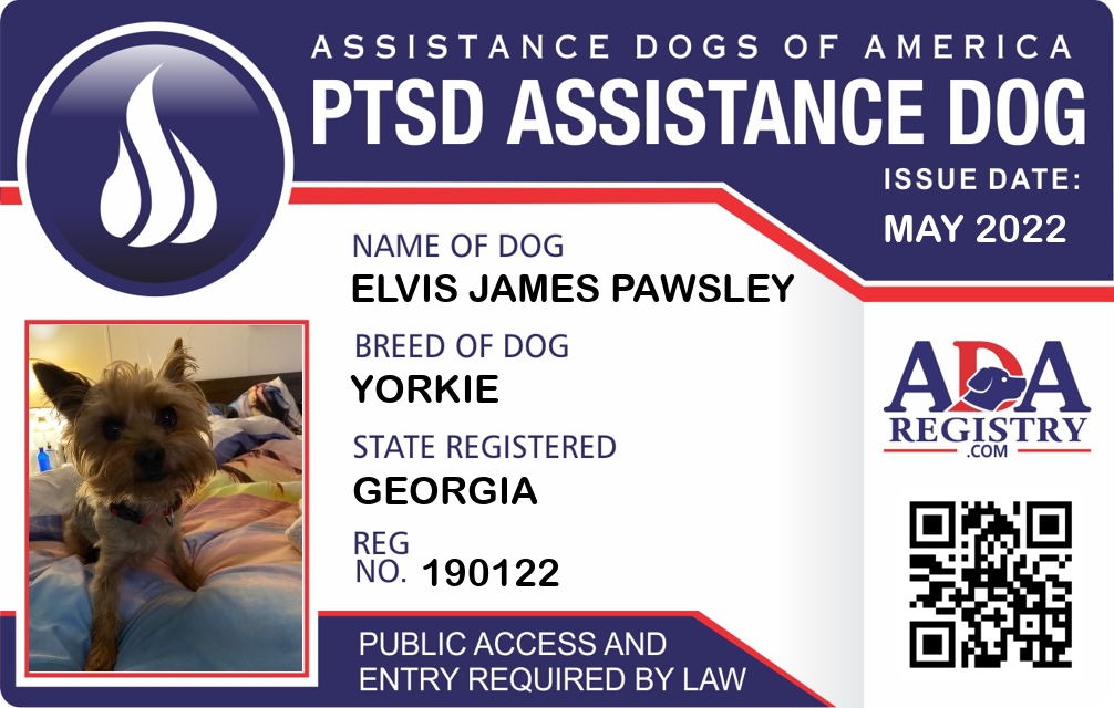 PTSD Assistance Dog Registration for ELVIS JAMES PAWSLEY